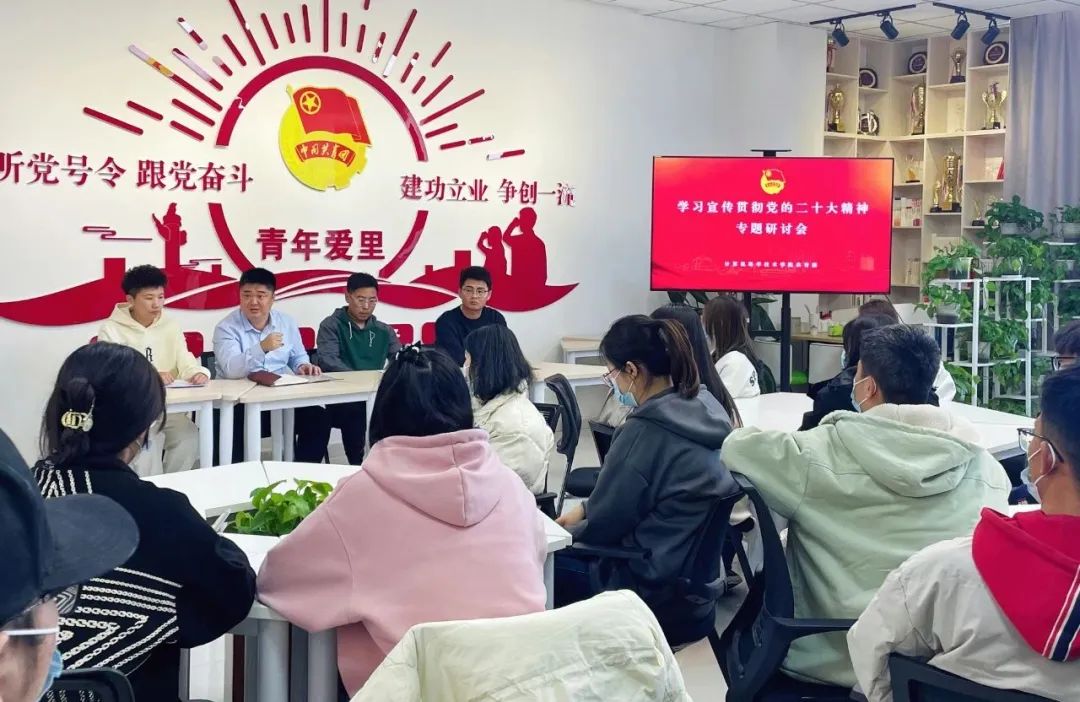3月2日,新葡萄88805官网共青团在青年爱里开展学习宣传贯穿党的二十大精神专题研讨会,学院团总支书记赵巍伟、副书记白洋、兼职团干部乔雅洁、王子涛以及学院各团支部书记、副书记(班长)、学生干部代表、社团负责人参加研讨会。