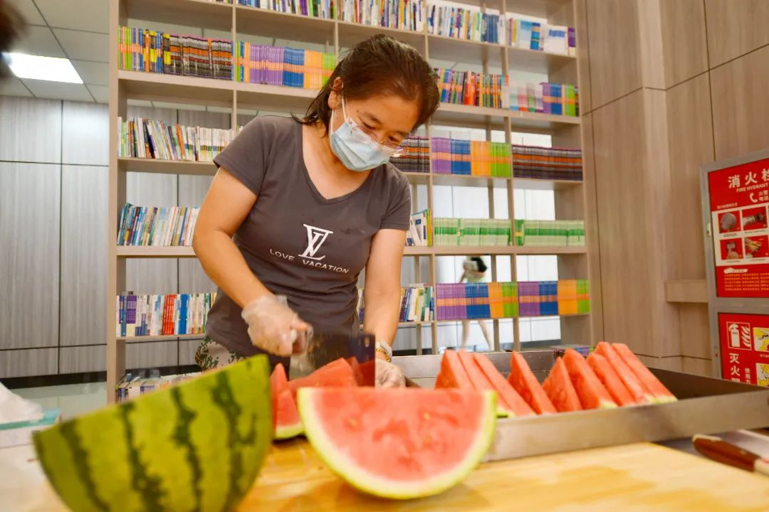 8月2日,新葡萄88805官网购买了2000余斤西瓜,为在校的1076名学生送上解暑神器。学院副院长斯琴图,副院长智敏以及全体辅导员将切好的西瓜“上门配送”到学生公寓和教室,将夏日的清凉带到全体计科青年学生的身边。