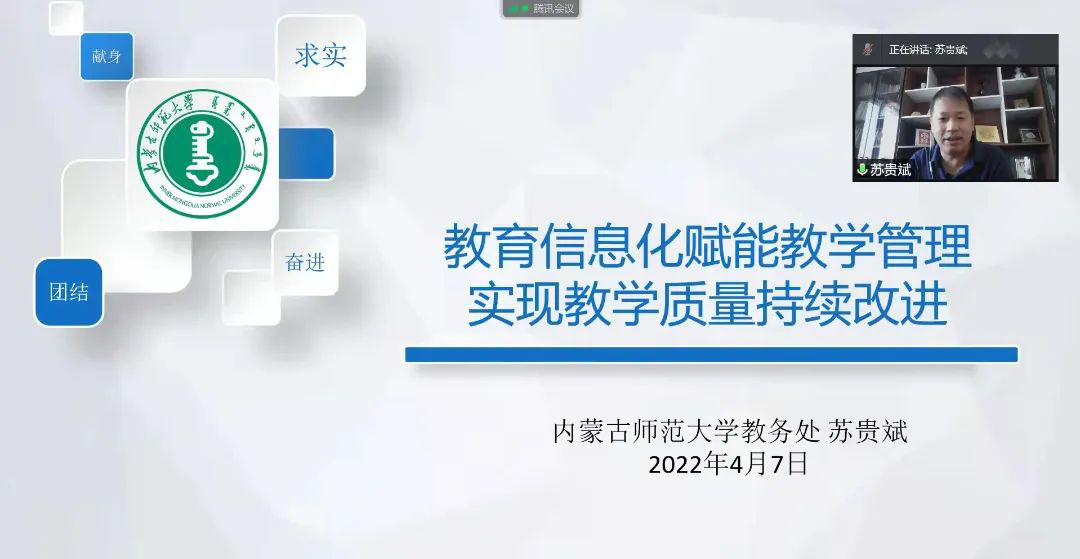 4月7日,新葡萄官网邀请了教务处副处长苏贵斌副教授为全院教师进行了题为“教育信息化赋能教学管理,实现教学质量持续改进”的专题讲座。讲座采用线上线下相结合的方式展开,由院长林民教授主持。