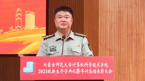 新葡萄88805官网副院长斯琴图副教授宣读新葡萄88805官网2021年度军事技能训练内务标兵宿舍名单并颁奖