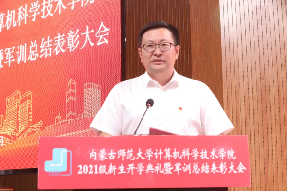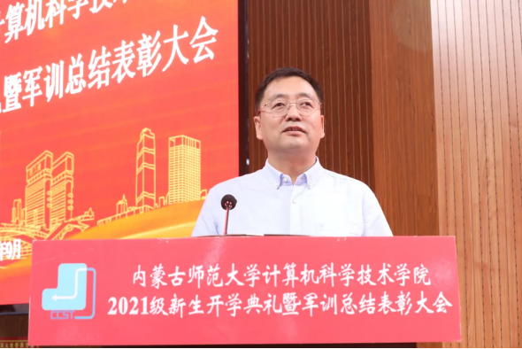新葡萄88805官网党委书记玉柱作题为《百年初心如磐,强国一代有我》致辞。首先,玉柱书记代表学院党委和全体师生,向来自祖国四面八方的新同学们表示最热烈的欢迎!玉柱指出,在中国共产党成立100周年的伟大历史节点上,新时代青年作为未来的建设者、参与者和见证者,希望同学们可以不负时代,不负韶华,不负党和人民的殷切期望。玉柱强调,计科学子要牢记习近平总书记对于青年的殷切嘱托,做强国一代有志青年,要在志存高远中厘清人生航向,要在奋楫笃行中擦亮青春底色,要在开拓创新中积蓄远航力量,希望同学们坚定理想信念,厚植爱国情怀,树立正确的世界观、人生观和价值观。在大学期间,刻苦学习,努力拼搏,放飞青春理想,早日成为能够担当民族复兴大任的时代新人。
