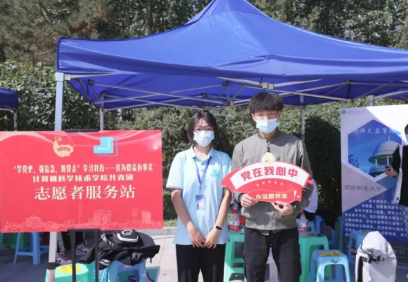 新葡萄官网设立青年志愿者服务站,帮助新生答疑解惑、带领新生办理入学登记。