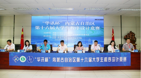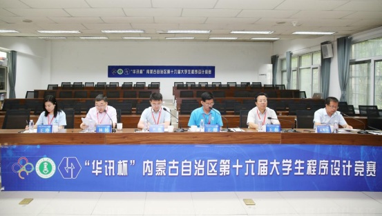 新葡萄88805官网教务处处长韩巍教授、内蒙古自治区计算机学会理事长、内蒙古大学计算机学院院长周建涛教授、内蒙古自治区高等学校计算机教育专业委员会秘书长、内蒙古农业大学计算机与信息工程学院王健教授、大赛冠名赞助商华讯高科股份有限公司常务副总裁刘璐先生、品牌部经理王玲女士、品牌部主管吴婷女士、新葡萄88805官网党委书记玉柱副教授、新葡萄88805官网院长林民教授、新葡萄88805官网党委副书记、副院长沙金、网络与软件工程系主任孟繁军副教授出席本次大赛。