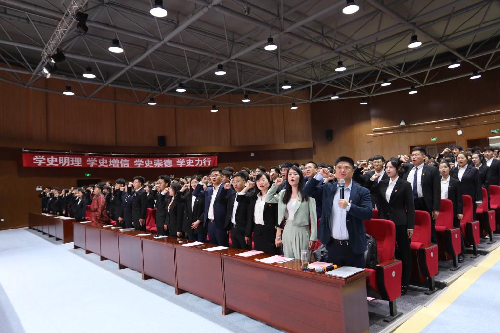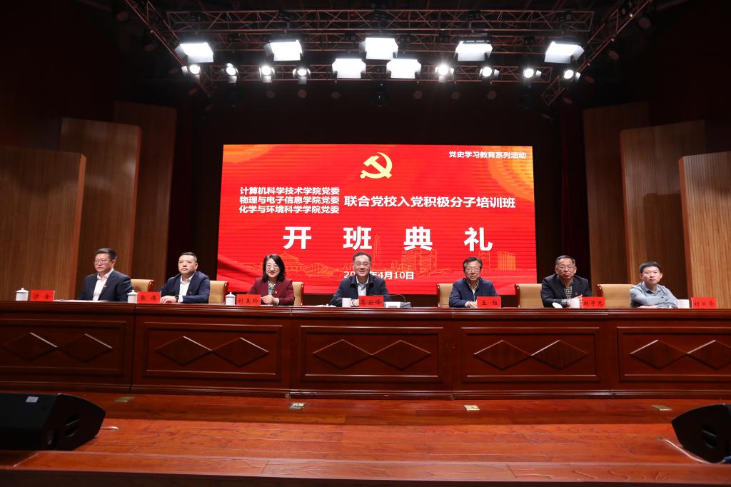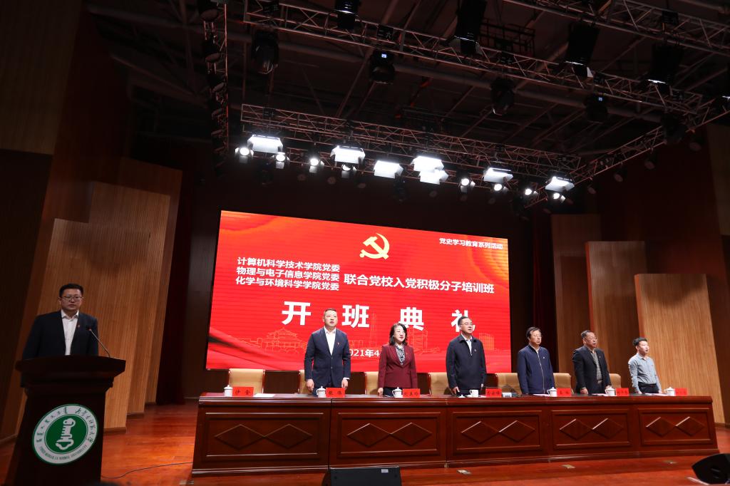 在庆祝中国共产党百年华诞的重大时刻,在“两个一百年”奋斗目标历史交汇的关键节点,全党集中开展党史学习教育之际,2021年4月10日,新葡萄88805官网党委、物理与电子信息学院党委、化学与环境科学学院党委在盛乐校区图书馆二楼报告厅联合举办2021年入党积极分子培训班开班典礼。