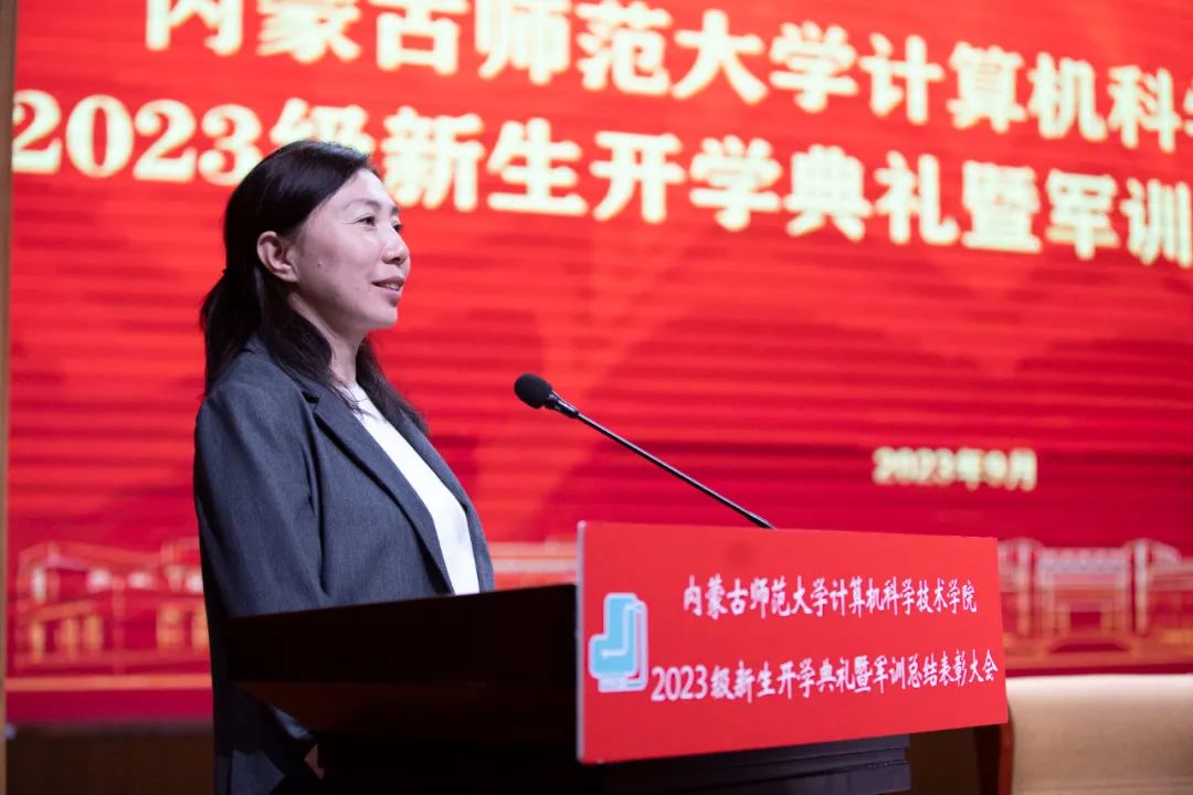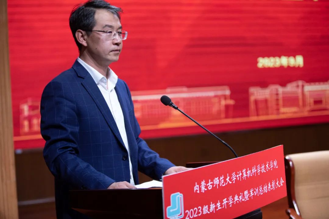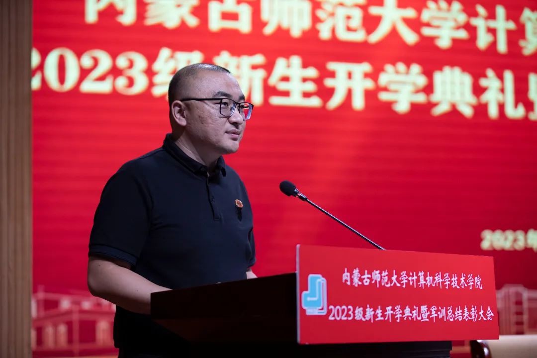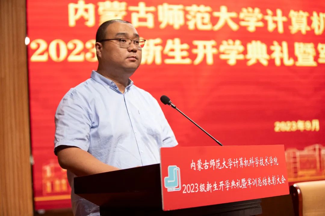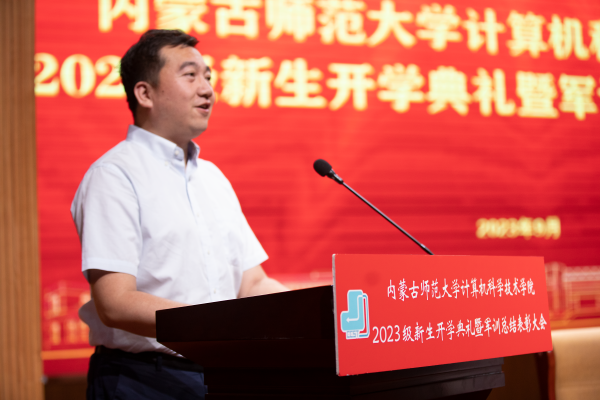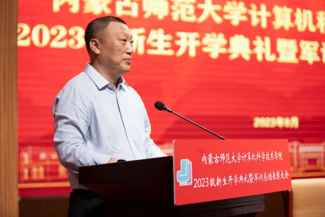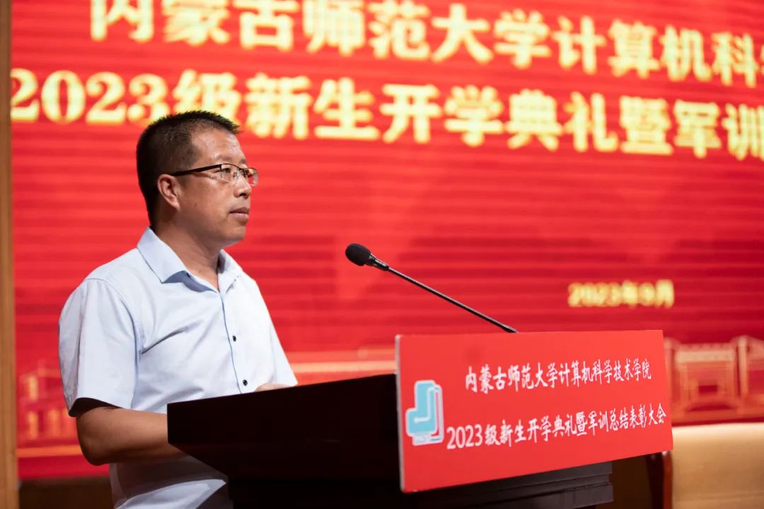 新葡萄88805官网党委书记王海龙,新葡萄88805官网党委副书记、院长、博士生导师林民,副院长斯琴图,计算机系主任朝力萌,网络与软件工程系主任孟繁军,副主任葛湘巍、徐行健,数据科学与人工智能系副主任包萨仁娜,全体新生班辅导员以及新葡萄官网2023级373名本科生和59名研究生出席大会。学院团总支书记赵巍伟主持大会。