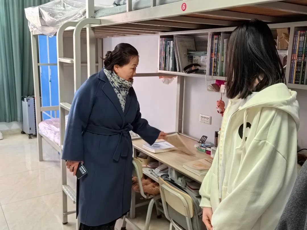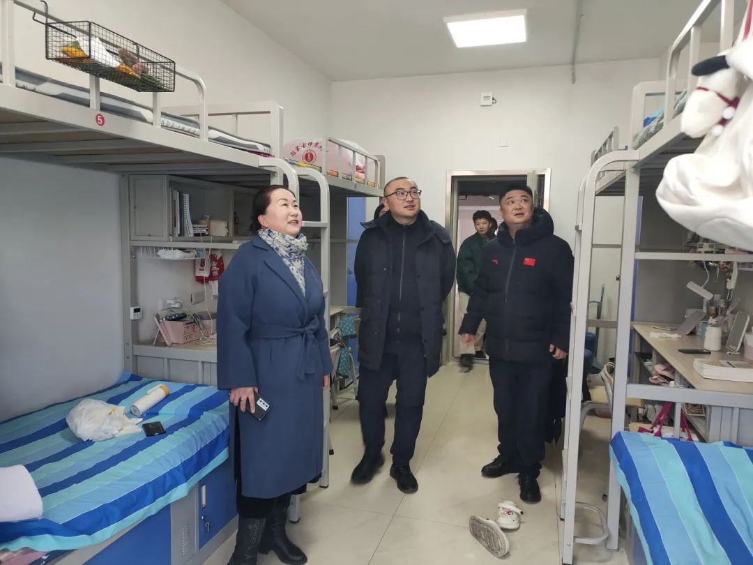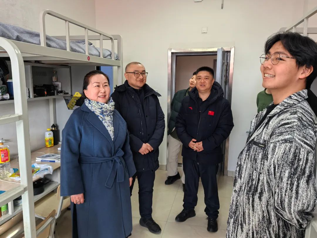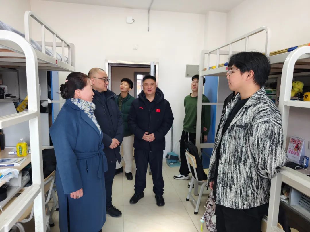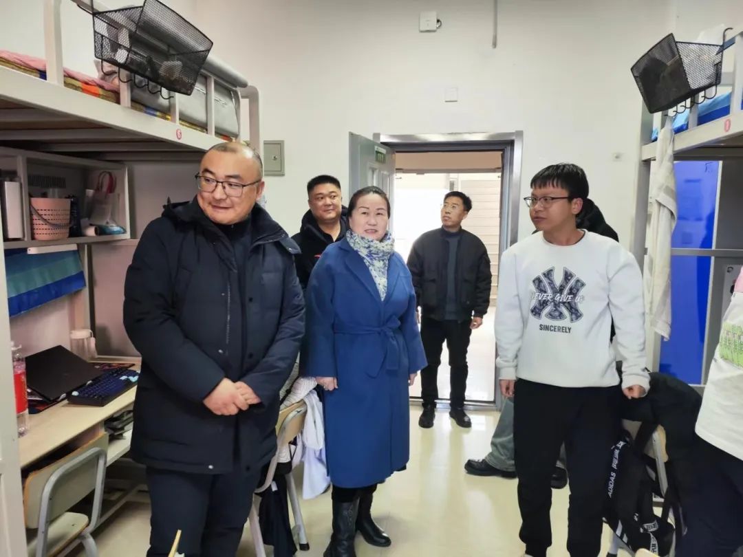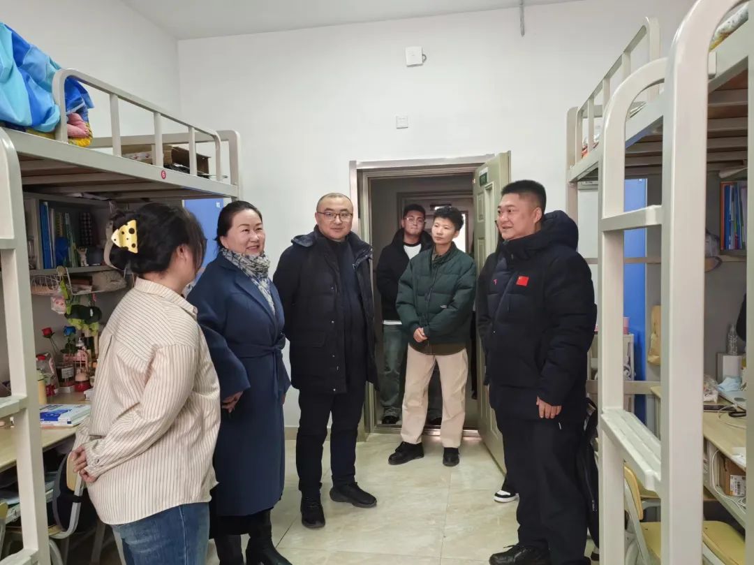 新年伊始,寒假结束,为了解新葡萄官网同学返校情况,掌握学生思想动态,2024年2月25日,学院党委书记乌日其木格,副院长柳林一行来到学生公寓走访慰问,为同学们送去关心和问候。乌日其木格书记、柳林副院长叮嘱大家及时调整生活状态,规律作息,以饱满的精神面貌迎接新学期的学习生活。同时,老师们细致地了解了同学们新学期的课业安排、学习规划,以及同学们的所求所需,共同解决大家在学习和生活中的问题。