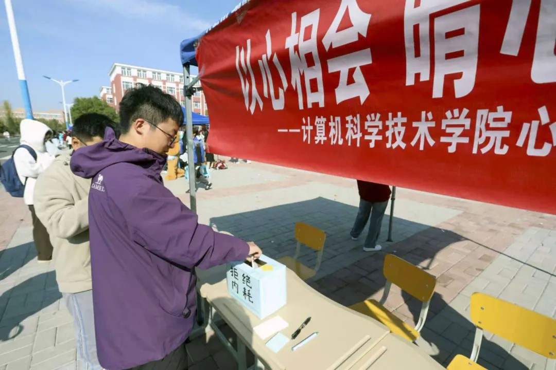 同学们通过匿名或实名的方式在纸上写下最近的烦恼、忧虑并将其投入寄语箱里。