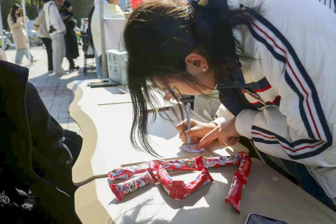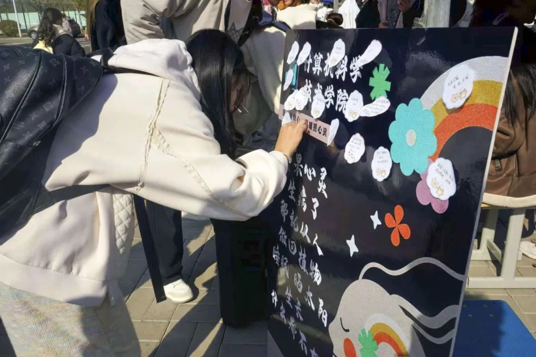 同学们在便利贴上写下正能量的话用于鼓励别人亦或是安慰自己。大家积极参与,表现出极大的热情,为宣传活动贡献自己的一份力量。