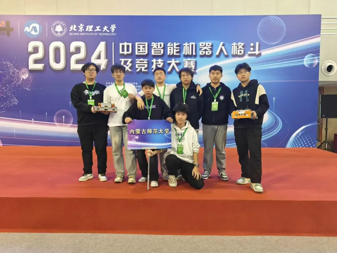 参赛过程中,得到了学校教务处和学院的大力支持。自备赛伊始,朝力萌老师便带领21级计科2班的陈佳元、布仁都愣,22级计科1班的朱永财、呼布其,以及22级计科4班的周文浩、李国宾、时绪光、付坤成,全身心投入备赛。在长达7个月的时间里,团队成员精心打磨每一个细节,反复优化机器人设计与策略。他们凭借着坚韧不拔的毅力、对创新的执着追求,以及默契无间的团队协作,攻克了一个又一个技术难题,最终在赛场上绽放光彩。