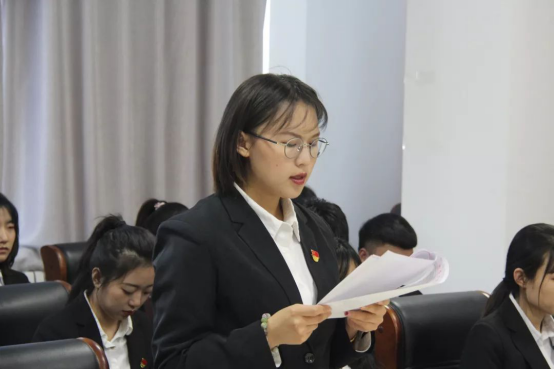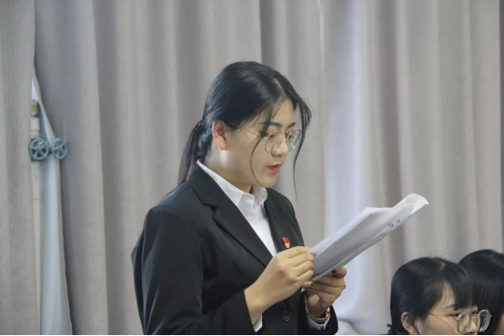 预备党员张晓芳、王丽蔓、刘馨岩、贾春雨、郭思良、邱宇同志宣读转正申请。