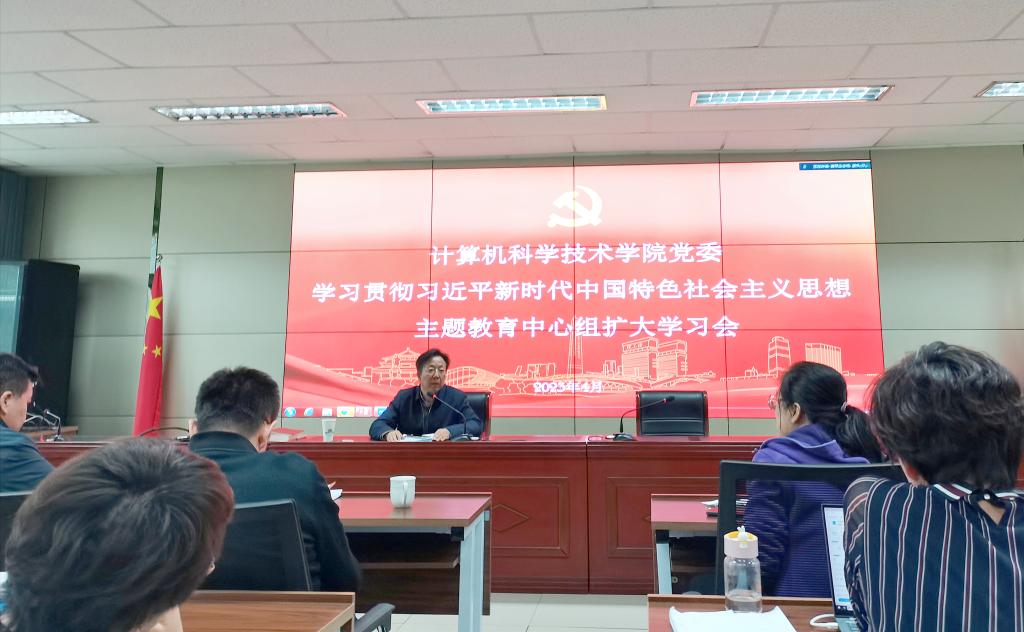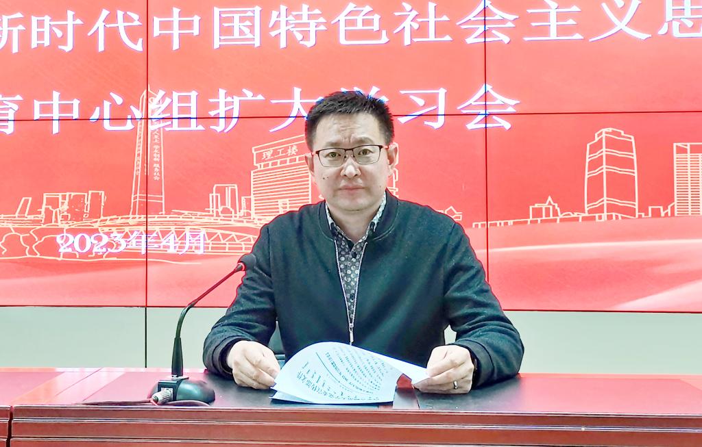 4月27日下午,新葡萄88805官网党委学习贯彻习近平新时代中国特色社会主义思想主题教育党委理论学习中心组扩大学习会在赛罕校区信息楼会议室举行。学院党委书记、院主题教育领导小组组长玉柱主持会议并全程领学,学院全体党委中心组成员、党支部书记、系部中心主任参加会议。