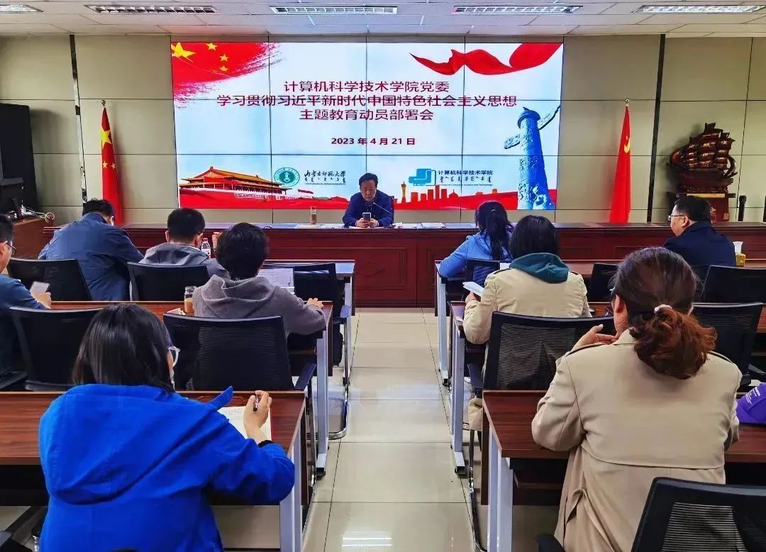 4月21日,新葡萄88805官网党委在赛罕校区信息楼会议室召开学习贯彻习近平新时代中国特色社会主义思想主题教育动员部署大会。学院党委书记玉柱主持大会,并作动员讲话,全体党员参加动员部署会。