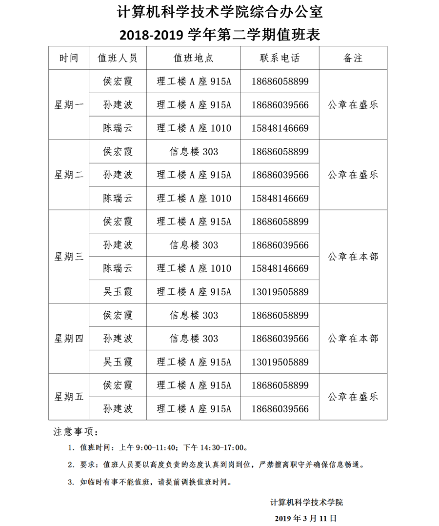计算机科新葡萄88805官网领导2018—2019学年第二学期值班安排.pdf